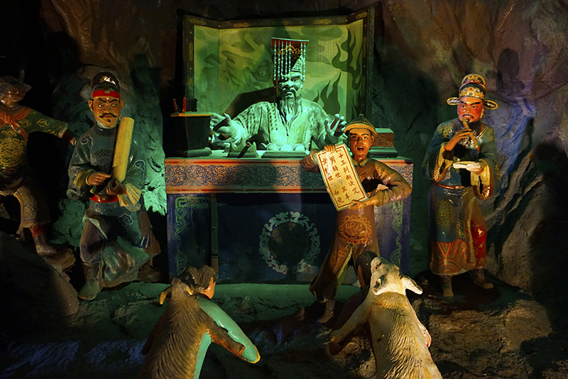 Bagian paling ikonis dari museum ini adalah The Ten Courts of Hell. Dahulu berupa wahana perahu mirip Istana Boneka di Dunia Fantasi, kini jalurnya dirancang untuk dilalui dengan berjalan kaki. Setiap tingkatan neraka divisualisasikan lewat diorama penuh detail—dari hukuman digergaji bagi mereka yang membuang makanan, hingga bukit berpisau untuk para pendosa perselingkuhan. Pemandangan yang tak cocok untuk si kecil. Atmosfer dramatis diperkuat dengan tata cahaya, membuat pengalaman ini terasa nyata. Tapi jangan khawatir, “neraka” ini tak berhawa panas karena berpendingin udara.